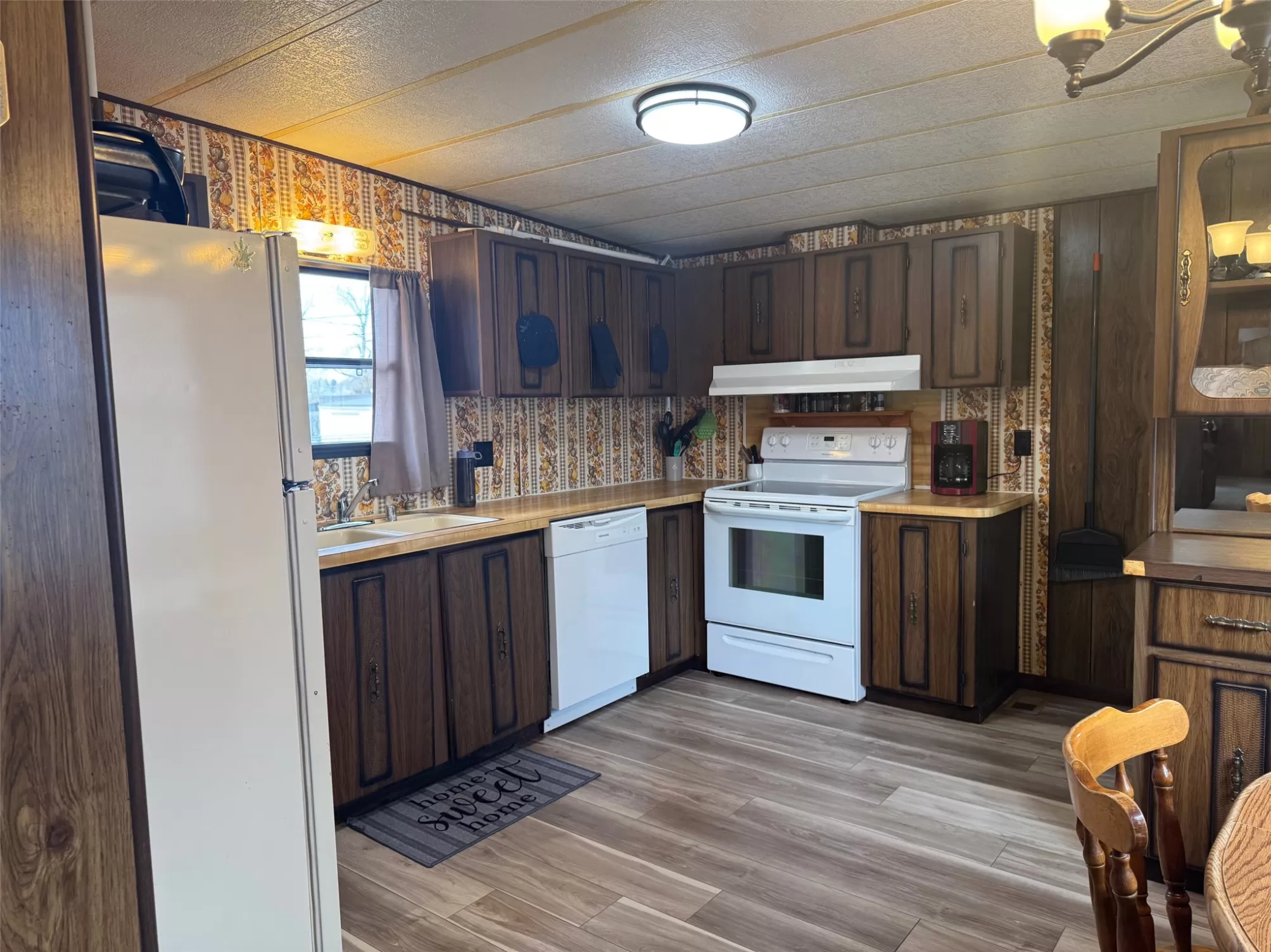 PRICE IMPROVEMENT! And...NO MONTHLY LOT RENT ON THIS ONE. The 1978 Mobile Home is situated on a city lot with beautiful mature trees. It has been so well maintained and cared for over the years. Lots of pride in ownership. 2 Bed/1Bath with 924 sq ft. It is not on a permanent foundation but offers you the opportunity to "own your own" lot including the home with a covered deck looking into a private fenced back yard and a storage shed with power to it. New flooring throughout the home including carpet and LVP. The living room is welcoming with a woodburning fireplace. There is a dining area with a built-in hutch and the kitchen has been nicely maintained too. Sliding glass doors off the kitchen lead to the covered deck. The furnace, water heater and central air conditioning have been updated. A must see to appreciate the care it has been given over the years!