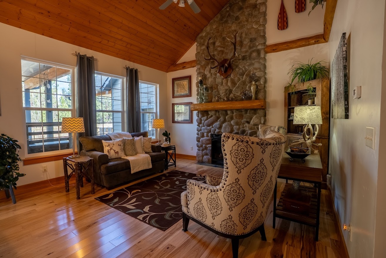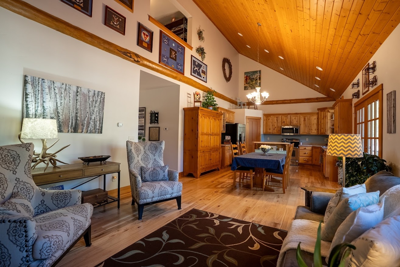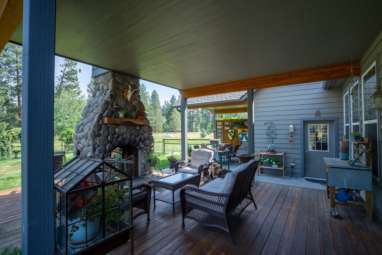 Bitterroot Valley dream home. Lovely country home on 3.26 acres with spectacular views of the Bitterroot Mountains and Mature Woodlands. In a quiet development that delivers country living while maintaining convenient access to Hamilton. Western Craftsmen style home with Log accents in the great room as well as the front porch. A wide 9 foot high hallway greets you as you enter and 9 foot ceilings on main floor contribute to the open space concept. Beautiful hickory floors and knotty alder cabinets add to the country flare while modern appliances, central air, and central heat ensure a comfortable environment 12 months a year. The open concept great room and kitchen are beautifully accented by tongue and groove ceiling finishes, and a full wall rock fireplace with a signature mantle. Knotty alder cabinets, and French doors leading to the expansive deck contribute to the wonderful western theme. The kitchen features modern appliances with an ample pantry making it well appointed for the home chef. The main floor ensuite bedroom & bath are expansive, two vanities as well as walk in closets make for convenient shared space. The main floor office features french doors and wood highlights. Upstairs are two additional bedrooms and a parlor space overlooking the great room with a full bath. Outside are two outdoor covered living spaces and a rock fireplace (eastside exposure), for the perfect morning coffee spot and a pleasant afternoon lounge area. Truly a dream home and lovely place to live your Montana dream.