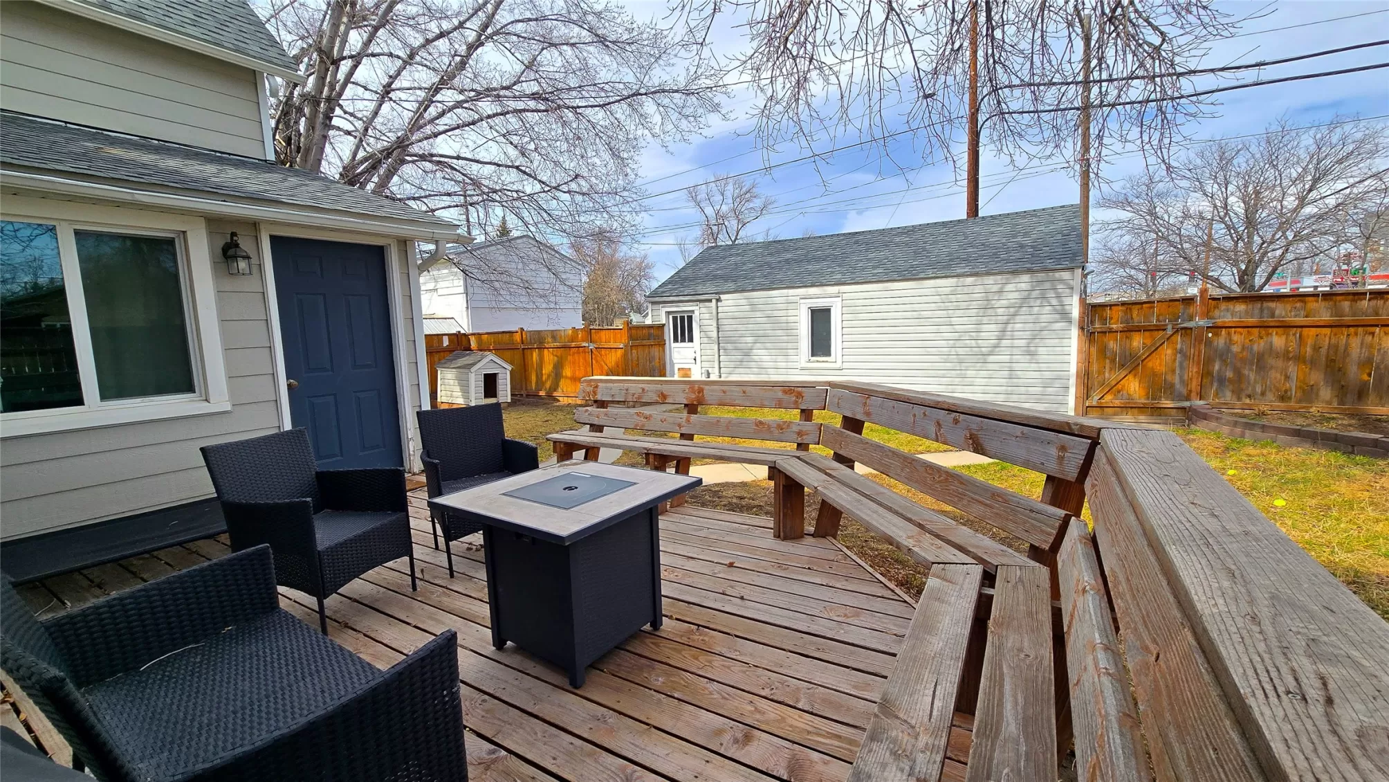 Discover the perfect blend of modern updates and classic Great Falls charm in this refreshed 4-bed, 2-bath home with a 2-car garage and additional RV/Boat parking. Thoughtful renovations have opened the main living areas to create a bright, inviting flow while preserving the character of exposed brick, detailed trim work, and unique architectural features that make this home truly stand out. The spacious kitchen is a highlight, featuring a stainless-steel farmhouse sink, updated cabinetry, stainless appliances, and a versatile island. It opens directly into the expansive dining and living rooms, offering plenty of space for gatherings, entertaining, or simply spreading out and enjoying everyday living. The fully fenced front yard is impressively large, with mature hedges providing privacy and a welcoming feel. Out back, double doors from the living room lead to a peaceful outdoor area complete with a lovely deck and mature trees that offer shade during warm Montana summers. The detached 2-car garage is a major bonus, equipped with a workbench, and its own breaker box—ideal for projects, hobbies, or extra storage. Inside, you’ll appreciate the generous mudroom off the back entry, a tiled laundry room downstairs, and a substantial amount of unfinished basement space ready for storage or future potential. This home offers the character buyers love with the updates they want, all in a convenient Great Falls location. A rare find with space, charm, and functionality throughout.