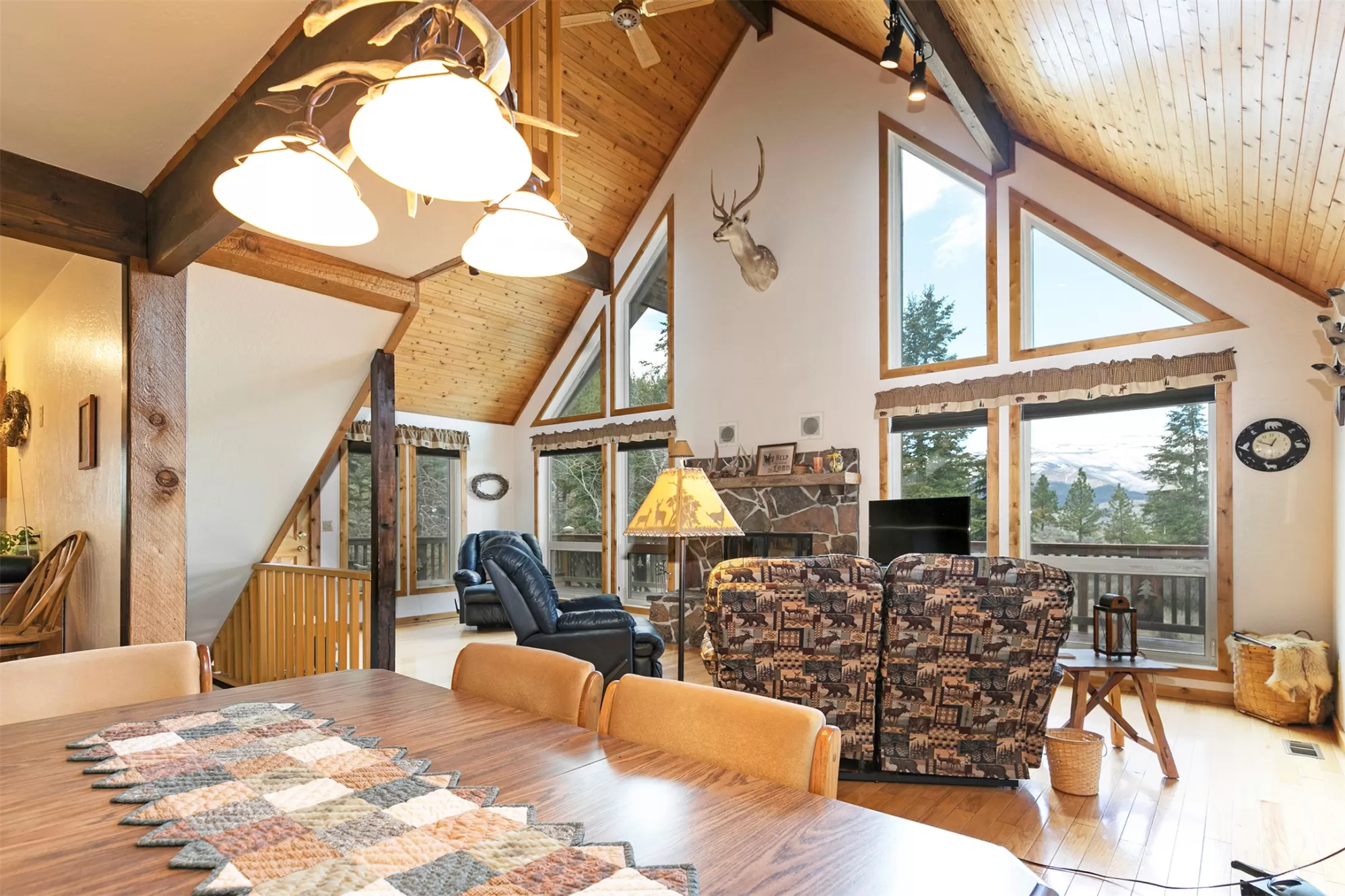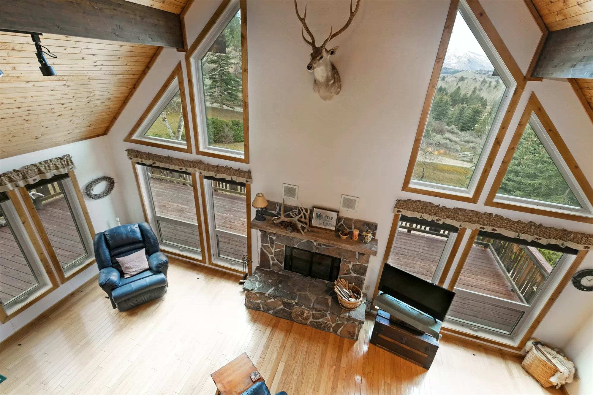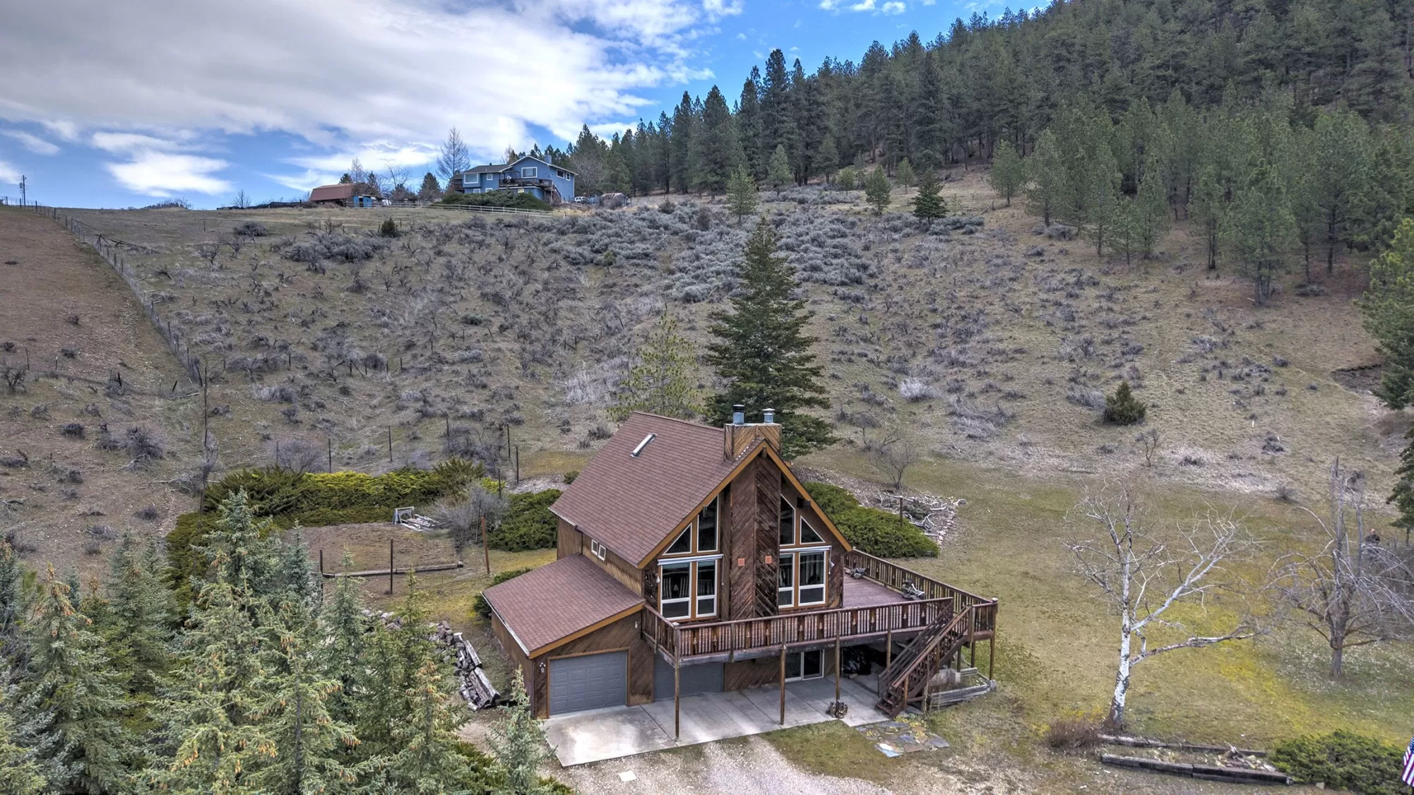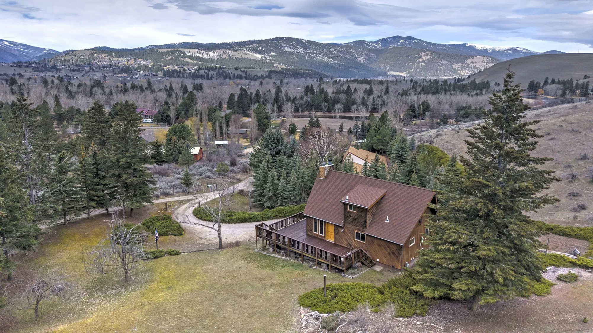 Incredible property in a highly sought after neighborhood walking distance to the Bitterroot River Access Rodeo Ranchette Park. Beautiful cedar sided A Frame with incredible views of mountains and Lolo Peak. 22' Vaulted Ceilings with floor to ceiling south facing windows. Main floor has hardwood floors. Upstairs loft is also a master suite or living area. Large wrap around deck, yard has mature fruit trees. Basement is daylight walk out with bonus bedroom and additional living area.