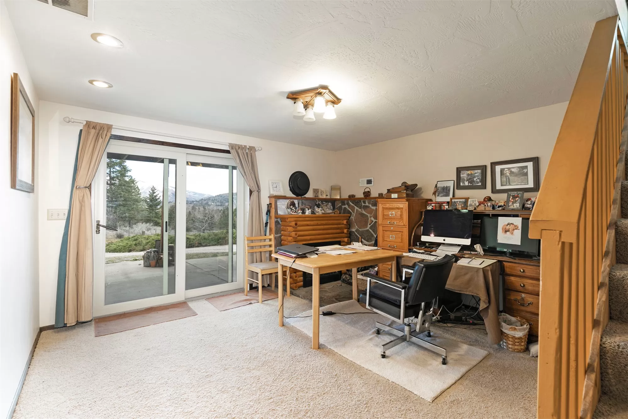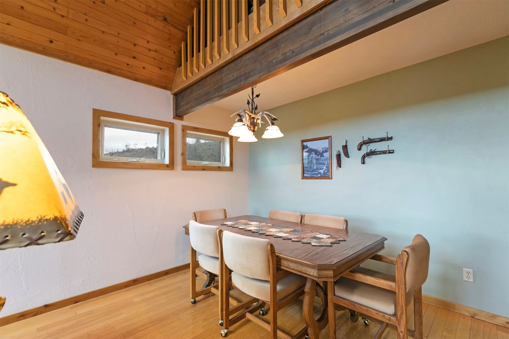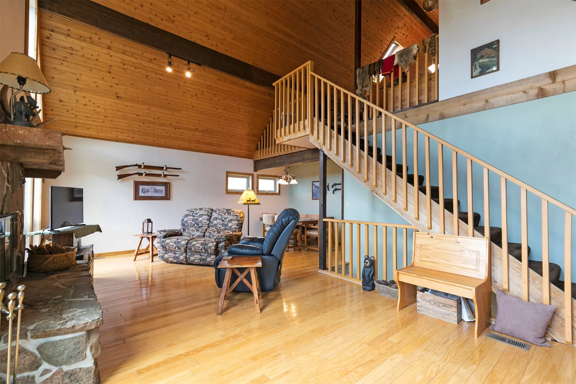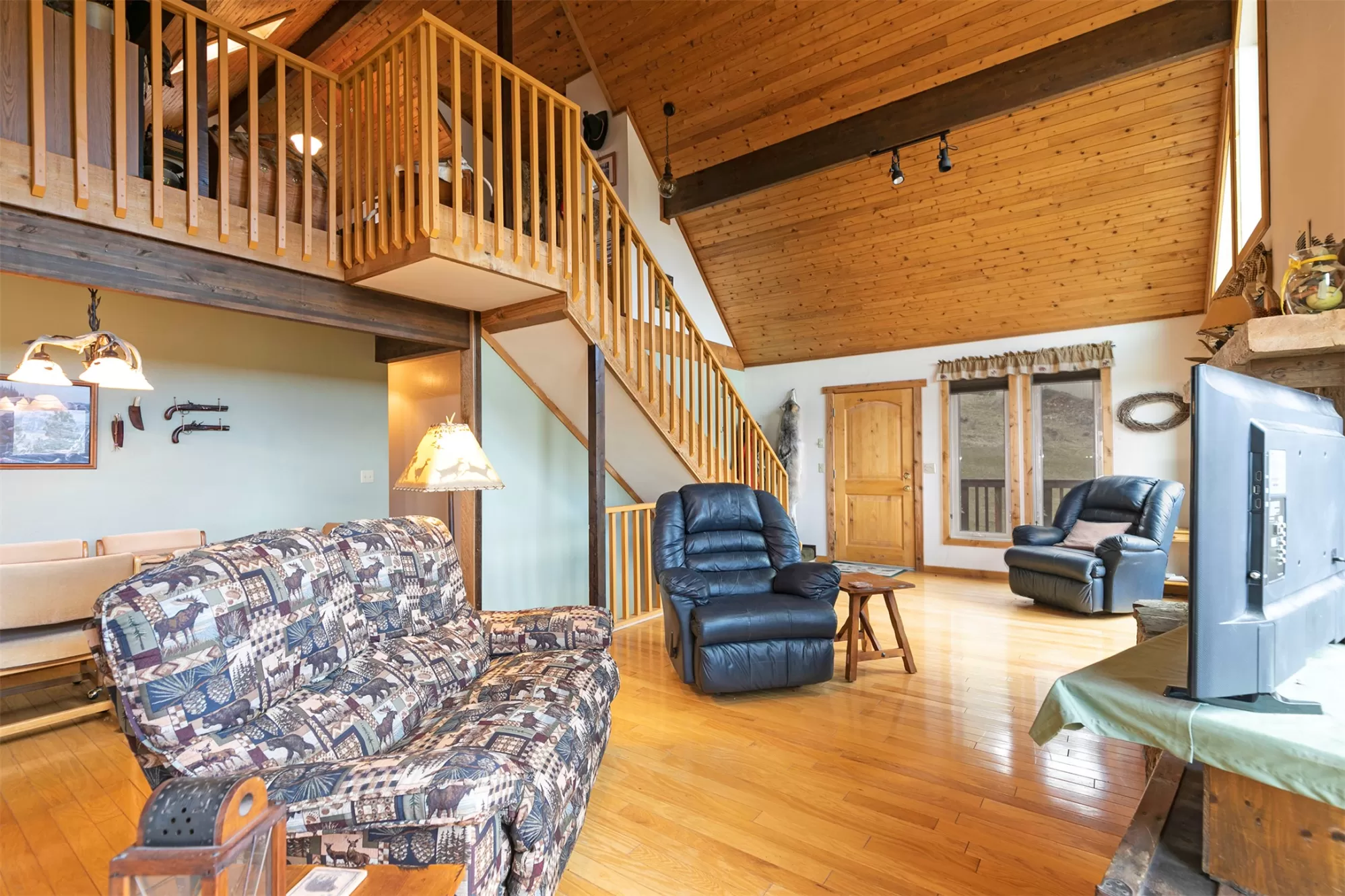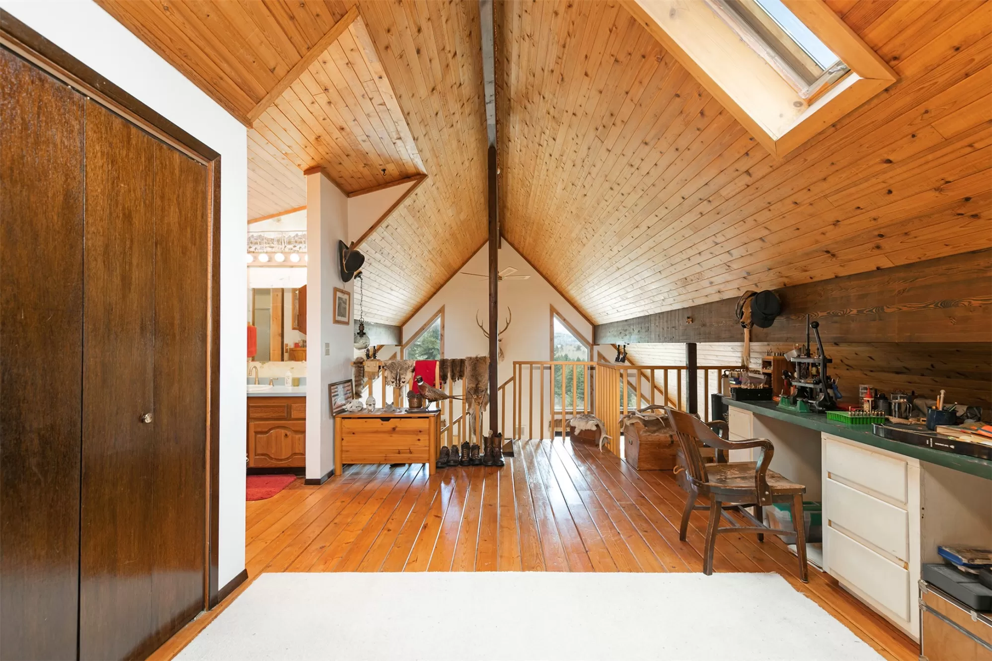Incredible property in a highly sought after neighborhood walking distance to the Bitterroot River Access Rodeo Ranchette Park. Beautiful cedar sided A Frame with incredible views of mountains and Lolo Peak. 22' Vaulted Ceilings with floor to ceiling south facing windows. Main floor has hardwood floors. Upstairs loft is also a master suite or living area. Large wrap around deck, yard has mature fruit trees. Basement is daylight walk out with bonus bedroom and additional living area.