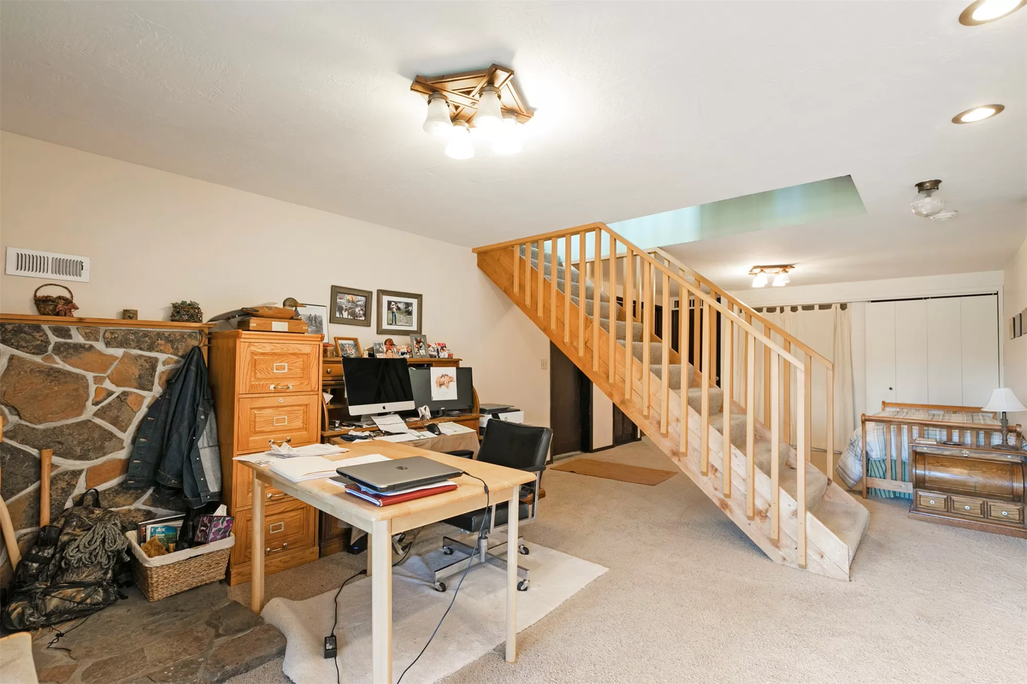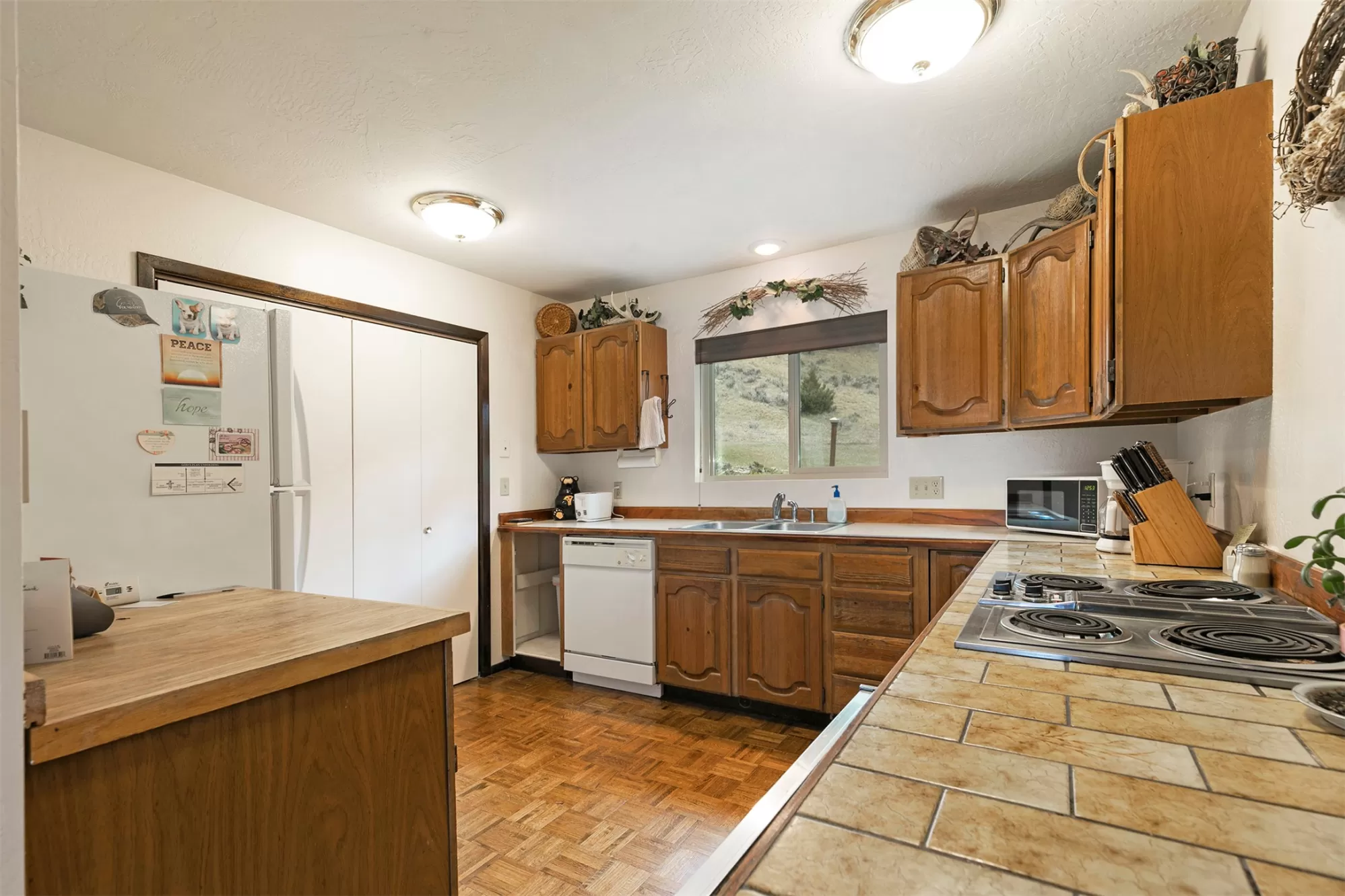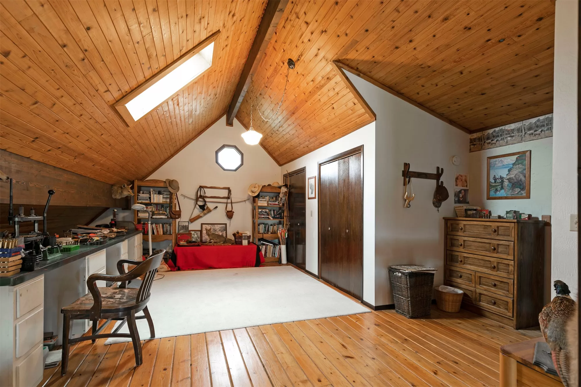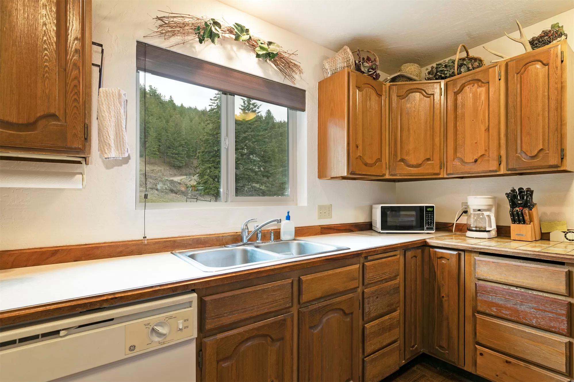 Incredible property in a highly sought after neighborhood walking distance to the Bitterroot River Access Rodeo Ranchette Park. Beautiful cedar sided A Frame with incredible views of mountains and Lolo Peak. 22' Vaulted Ceilings with floor to ceiling south facing windows. Main floor has hardwood floors. Upstairs loft is also a master suite or living area. Large wrap around deck, yard has mature fruit trees. Basement is daylight walk out with bonus bedroom and additional living area.