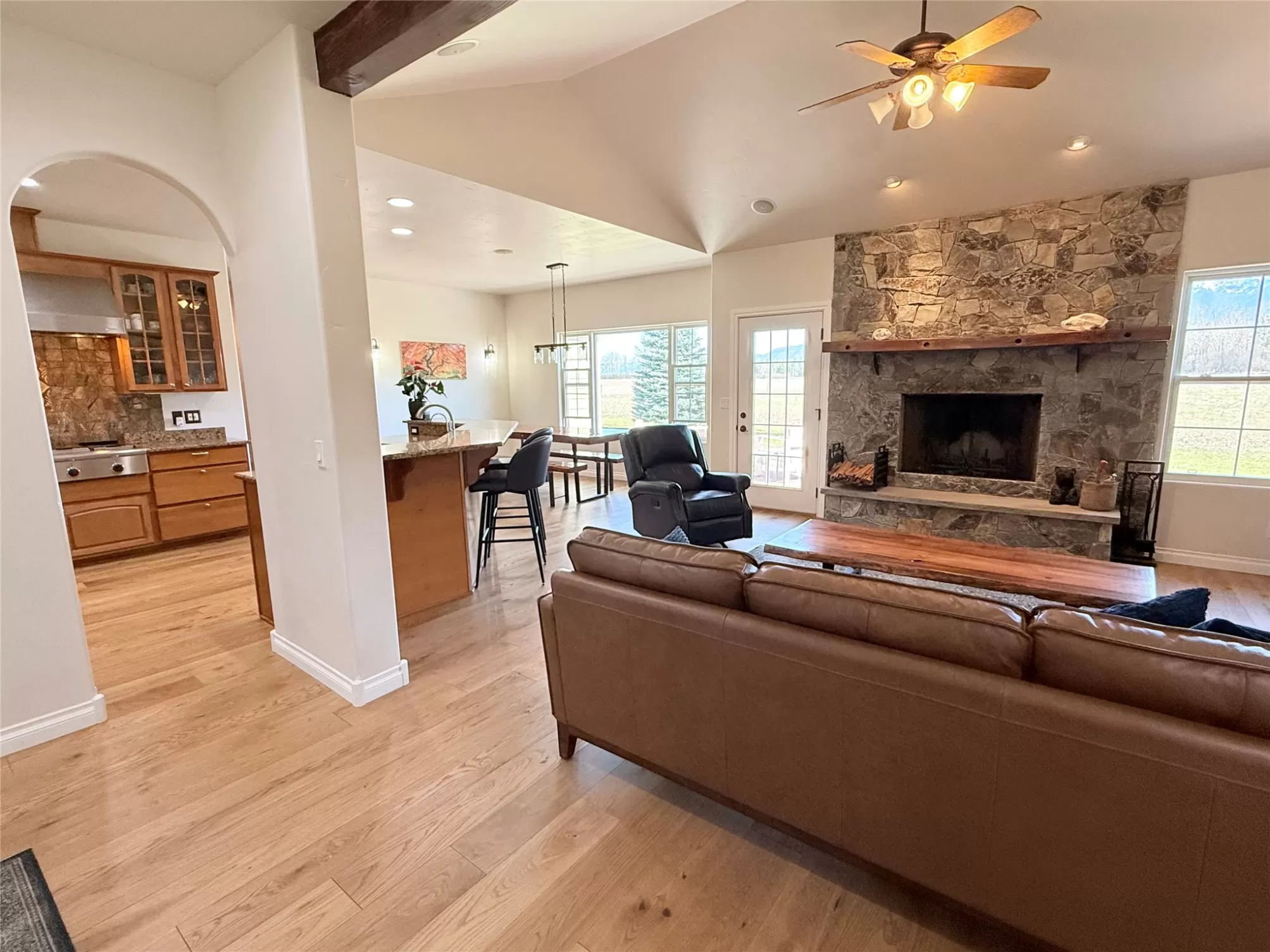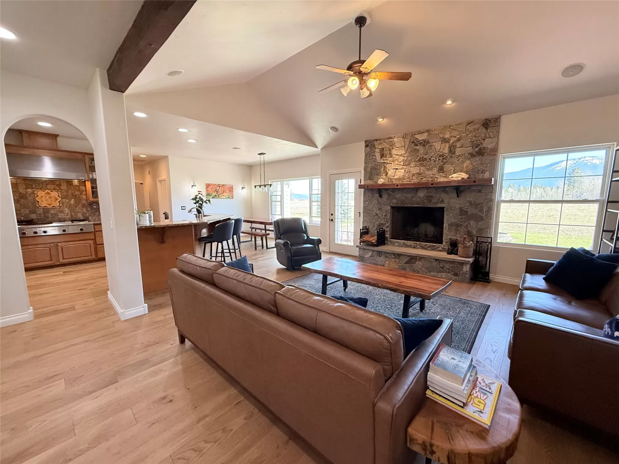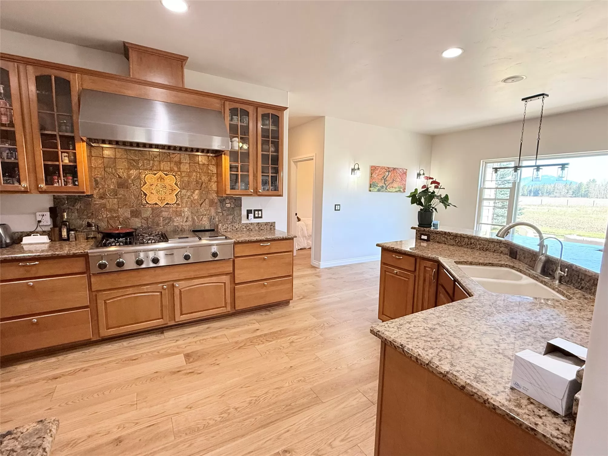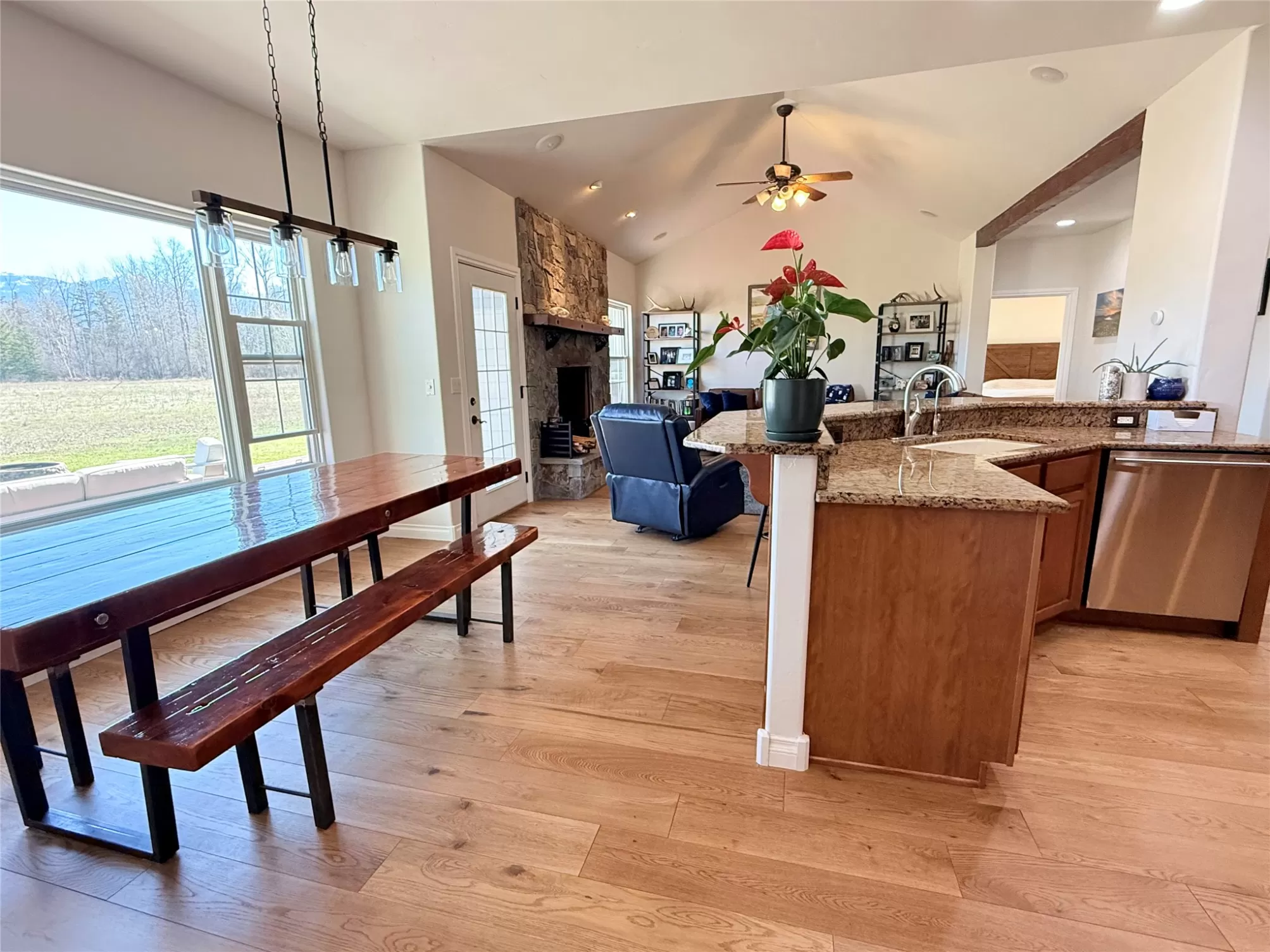 Please check out this North Eastern Kalispell Country Living Home Featuring Views of Glacier and The Whitefish Mountain Range at your back door. Primary Bedroom and 2 other bedrooms on the main floor and 1 bedroom and media up. Office is also on the main floor. Capture the peaceful country living of this 2,293 sq ft ranch-style home with an open floor plan perfect for entertaining. This home is a short 25-30 minute drive to Glacier National Park. The heart of the home is a kitchen designed for unforgettable gatherings, boasting a Professional gas stove, hood, and double convection oven. Some of the homes features are in-floor radiant heating throughout the winter months. With a central vacuum for easy cleaning and a sprinkler system to keep your outdoor spaces lively and colorful so you’ll have more time to entertain and explore Montana. While visiting don't forget to take the time to relax and capture the amazing views or friendly gatherings! The generous 30x40 shop is ideal for toys, fulfilling hobbies and extra storage, plus separate RV parking with electric hookups and no HOA or covenants! For those who love to recreate outdoors, this home is just minutes away from all the Montana fun you could enjoy like Hiking, golfing, fishing, and skiing. Recent remodel includes new hard wood flooring, complete interior paint, new water heater, reverse osmosis system, new Whirlpool refrigerator, recent septic maintenance and updated floor heating.
