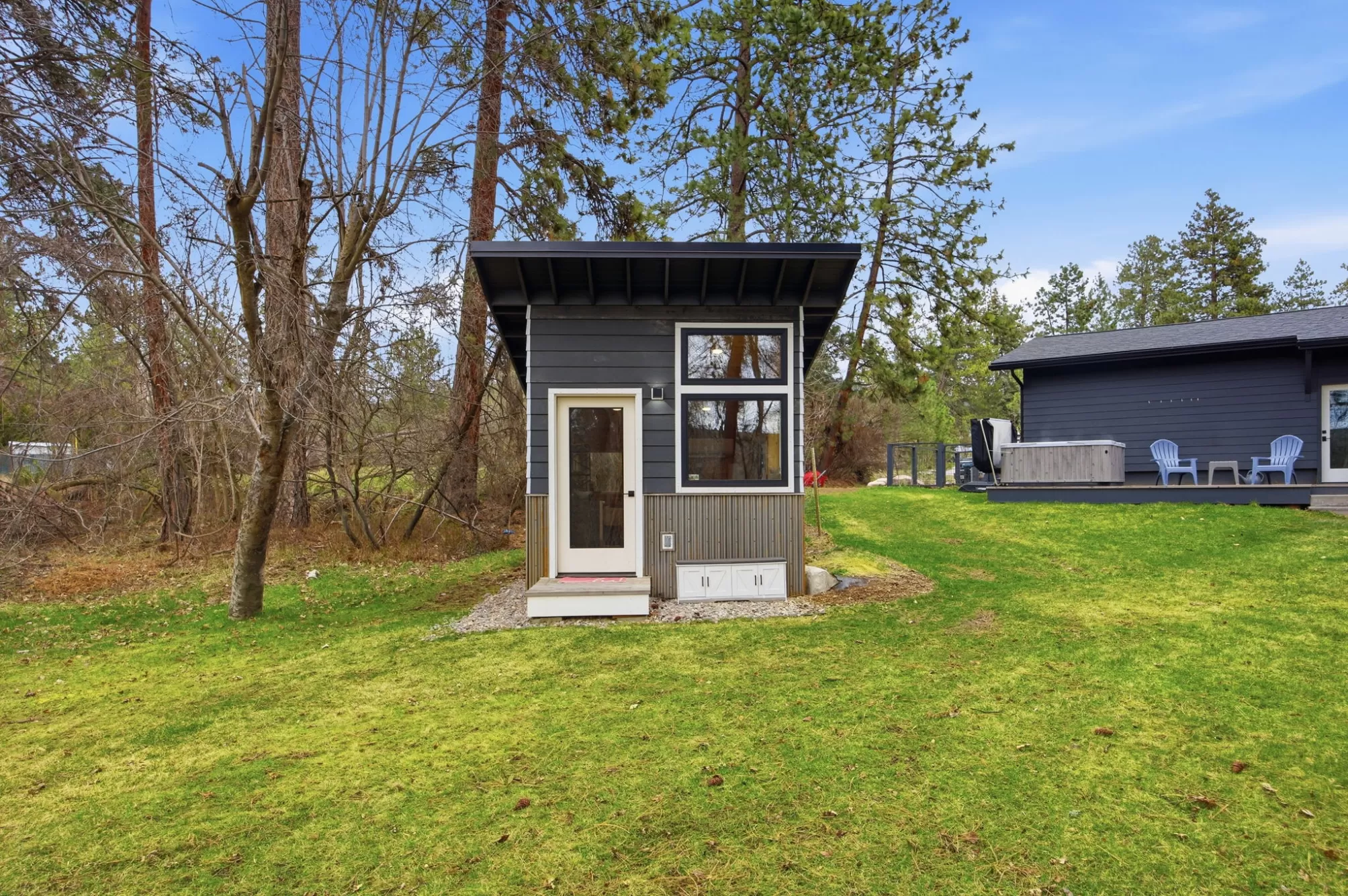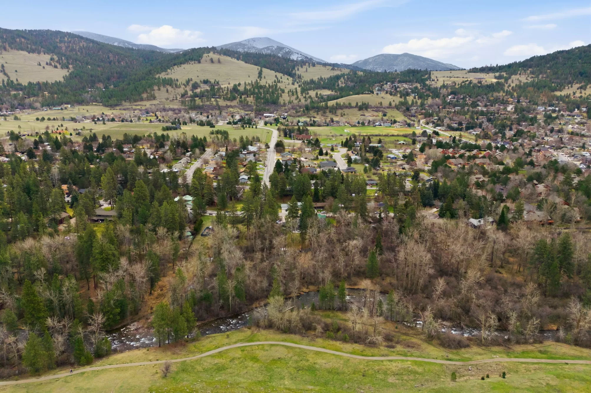 This is the kind of property in the Rattlesnake that stands out immediately and then stays with you. Set along Rattlesnake Creek and backed by a stretch of natural landscape, the setting is quiet, private, and a step removed, while still being fully connected to one of Missoula’s most sought-after neighborhoods. The home itself was taken down to the studs and rebuilt with intention throughout. Major systems including HVAC, electrical, windows, and roofing have all been addressed, while the floorplan was reworked to create a more open, connected living experience. What exists now is a clean, cohesive home designed to bring in light, improve flow, and better connect to the outdoors. The main living space centers around a wall of windows that pulls the setting inside, while the kitchen is both functional and well thought out, anchored by a large island, an induction stove and two ovens, all designed to work as a true everyday space rather than just a showpiece. The primary suite carries that same approach, with direct access to a private enclosed patio that connects into a secondary fenced yard area, creating a secure and easy-flow outdoor setup that works especially well for pets. The lower level expands the home in a meaningful way, with a large second living area, three additional bedrooms, and a Jack-and-Jill style bathroom. With walk-out access to the backyard and a partial kitchen already in place, the space offers flexibility for guests, extended living, or future expansion into a more complete secondary setup. But what truly defines this property is how it lives outside. Rattlesnake Creek runs directly through the backyard, with a footbridge leading across to a more secluded portion of the lot. The back area and yard have been shaped into multiple usable spaces, from open lawn, to patio and fire pit areas, to an elevated deck that includes a jacuzzi facing the creek. It all creates a setting that invites daily use rather than occasional appreciation. From here, the connection to the larger trail system is seamless. Rattlesnake Creek forms the backbone of one of Missoula’s most established recreational corridors, offering miles of trails that begin with wide, gradual paths and extend into deeper forest and mountain terrain – and that trail system can be accessed just a couple of blocks away. It’s a rare combination of accessibility and immersion—something that becomes part of everyday life. A custom-designed detached studio adds another layer of flexibility, offering a finished, climate-controlled space for work, guests, or creative use, positioned just far enough from the main home to feel separate while still connected to the property. A newly built multi-bay storage structure rounds out the improvements, providing practical space for gear, tools, and everything that comes with living in this part of Missoula. Altogether, this is much more than a remodel. It’s a complete redesign of a property that has been fundamentally rethought, one where the home, the setting, and the surrounding landscape come together in a way that feels intentional, livable, and hard to replicate.
