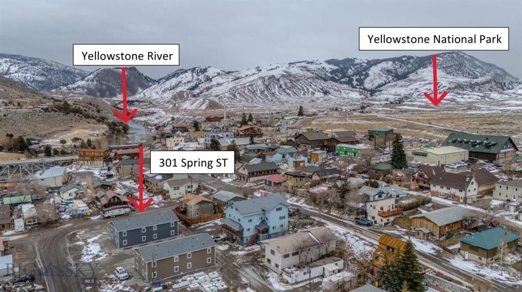 Discover outstanding investment potential in the heart of Gardiner, Montana, just steps from the iconic North Entrance to Yellowstone National Park. Built in 2020, this exceptional property offers four fully furnished, turnkey apartments, thoughtfully designed with modern finishes and lasting quality throughout. Each unit features two bedrooms, a full bath, in unit laundry, and stylish, well appointed interiors complete with all furnishings, appliances, and essentials, making it truly move in or rent ready from day one. One ground level unit is ADA compliant, and all units are designed with single level living and wide doorways to enhance accessibility and comfort. Ideal for a variety of investment strategies, the property is perfectly suited to continue its use as a thriving vacation rental business, be utilized for long term leasing, or even potential condo conversion. Additional development opportunities may also be possible on the lot, further enhancing its value. Positioned in one of Montana’s most sought after gateway communities, this property offers unparalleled access to world class recreation, whether it’s wildlife viewing, fishing, hiking, rafting, hunting, or simply enjoying the natural beauty of the region. This is a rare opportunity to own a versatile, income producing property in an unbeatable location.