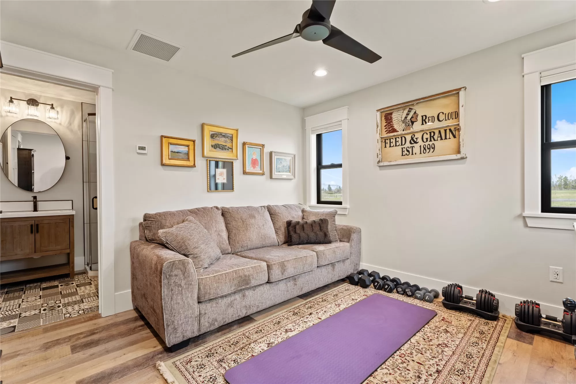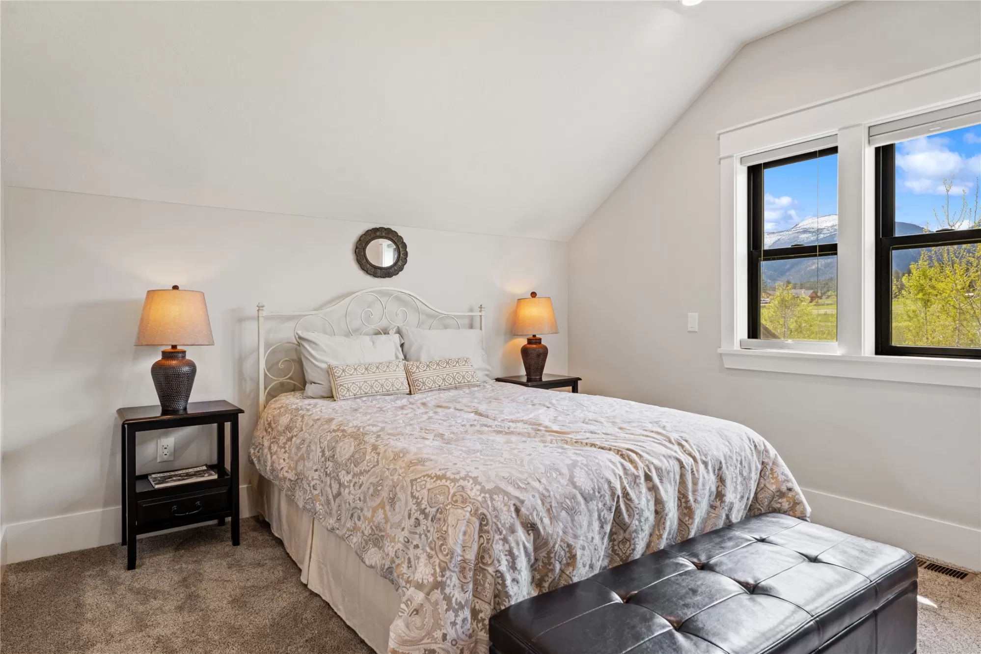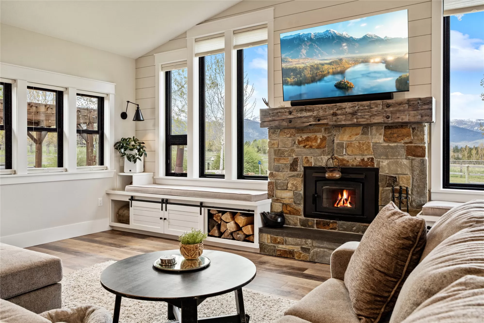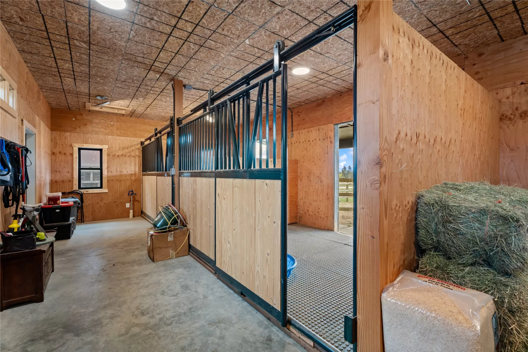 This gated, fully fenced, level 10.8 acre property, built in 2022, offers a flexible living setup with a single level main home, attached garage with upper level storage, detached shop with upper level apartment, 2 horse stalls, and the ultimate man cave and she-shed. You truly won’t want to leave! The main residence features 2 bedrooms and 3 bathrooms with radiant heated floors and a vaulted ceiling in the open concept living area. The primary suite includes a walk-in closet, dedicated craft or office space, and a well finished en suite bathroom with floor to ceiling tile. The second bedroom also has its own en suite and private entrance, creating ideal separation for guests. Large picture windows frame unobstructed views of the Bitterroot Mountains and bring in natural light throughout. The living area is centered around a wood burning fireplace, and the kitchen is equipped with stainless steel appliances. A mudroom, separate laundry area, and attached heated garage with RV height doors and upper level storage for all your holiday decor. The heated 2 car detached garage adds versatility with a lower level that includes a man cave with bar, washer and dryer hookups, work room, and half bath. Upstairs, a fully furnished 1 bedroom apartment offers a full kitchen, living area, bathroom, and spacious bedroom, ideal for guests, rental income, or multigenerational living. The she-shed has a private workspace and a 2 stall barn with runouts, arena, hay storage, heated tack room, and covered bay. Multiple fenced pastures support rotation, and the working hay field produces up to 10 tons of quality, low sugar horse hay. Irrigation is in place with a pressure line and wheel line. The acreage captures private 360 degree views of the Bitterroot Valley and includes a deer proof fenced garden with a large raised bed. Outdoor living is complete with a covered wraparound porch and a hot tub with pergola shade, creating a setting that fully takes advantage of the surrounding landscape.